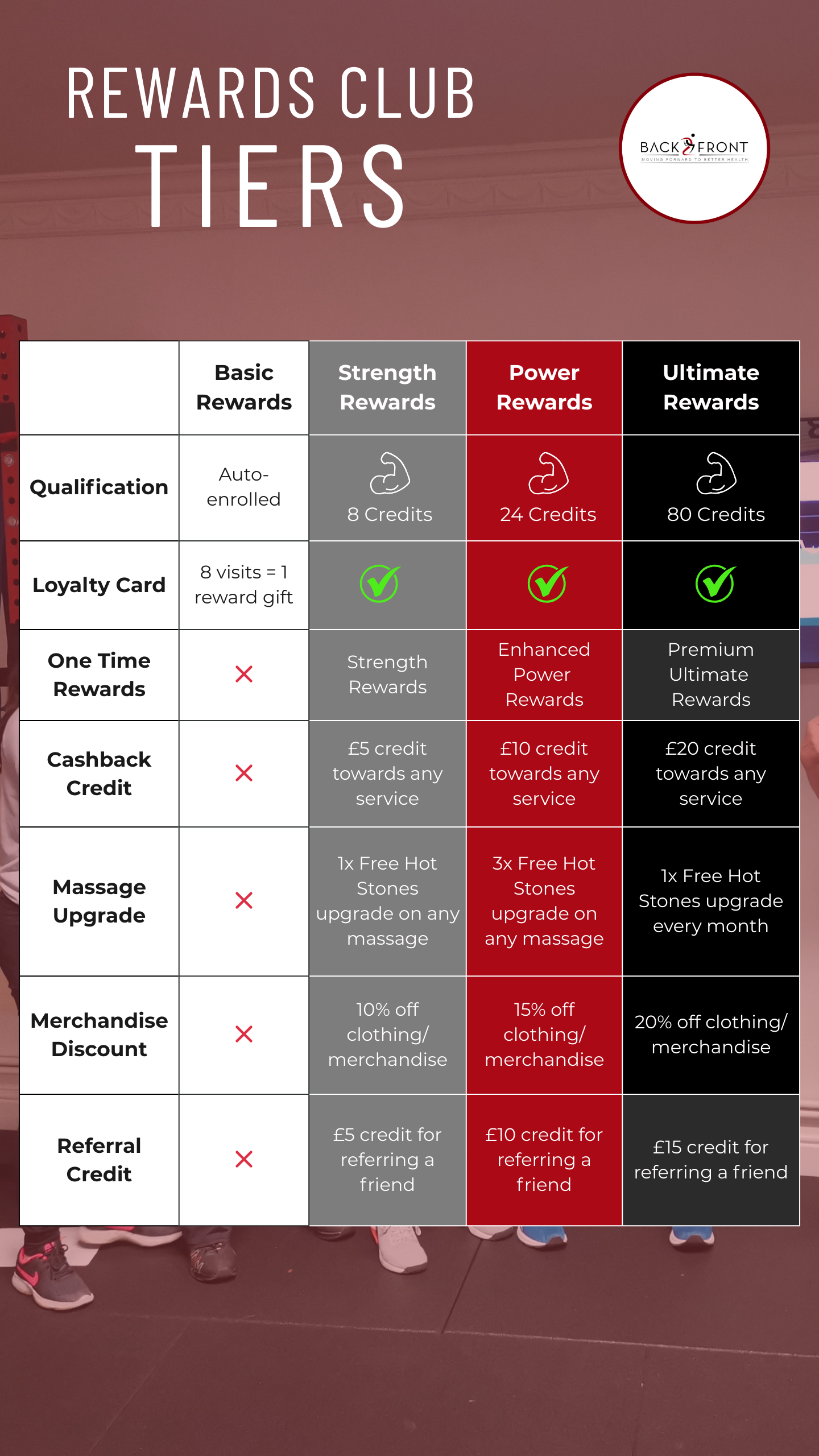 Referral credit can be redeemed when you refer a friend for a session of physio, massage or PT. Cannot be redeemed for a single class but can be redeemed on membership sign up.